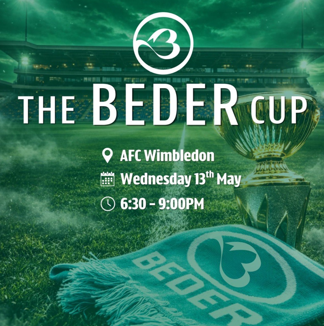 The Beder Cup is a 5 a-side football tournament taking place at AFC Wimbledon’s, Cherry Red Records Stadium on Wednesday 13 May 2026 from 6.30-9pm in support of Beder.