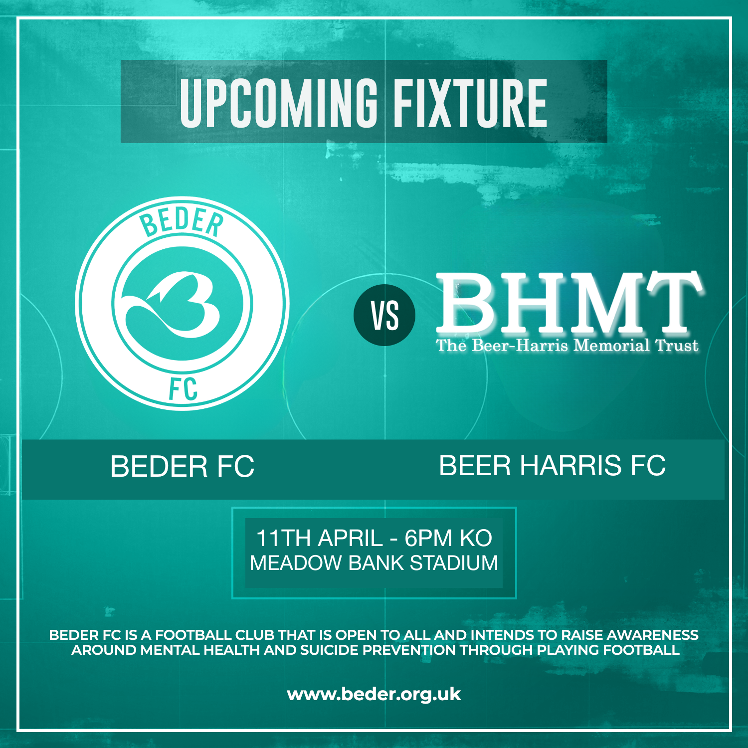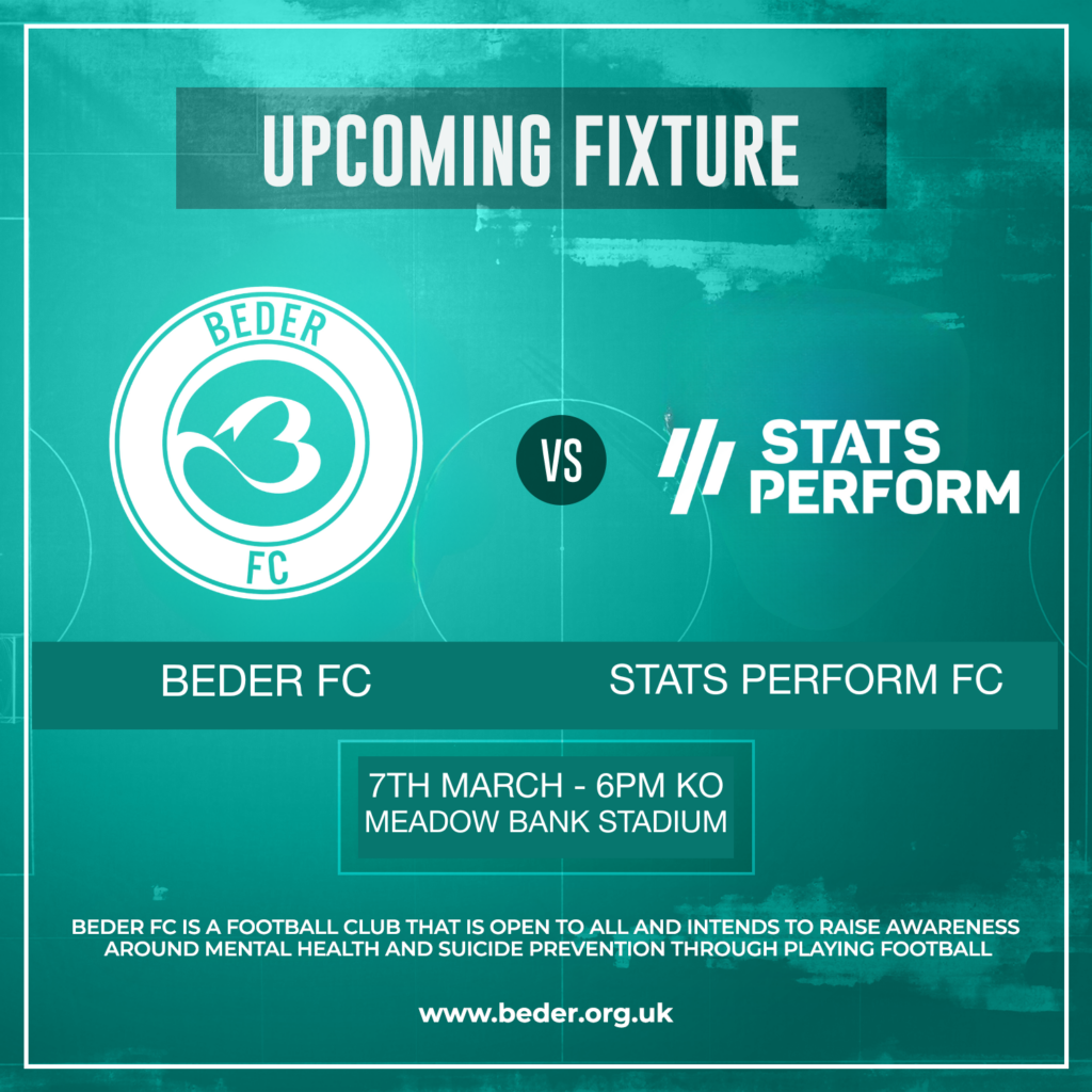 This event is your chance to join Beder FC and play an exciting game of football whilst we all play our part in raising awareness around mental health and suicide prevention.